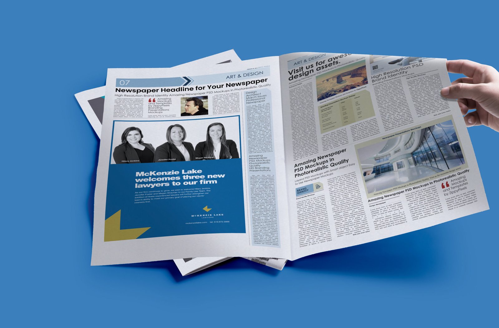 Print Ad for Law Firm This print ad is one of many print ads run for a big corporate law firm to announce new lawyers joining the firm. Similar Projects Back to All Projects